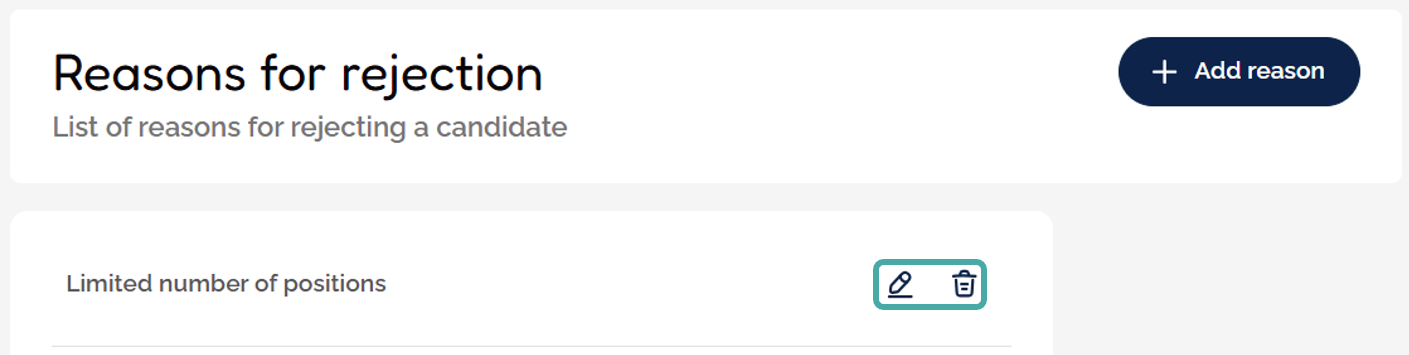 Here, you will see any previously created reasons for rejection.