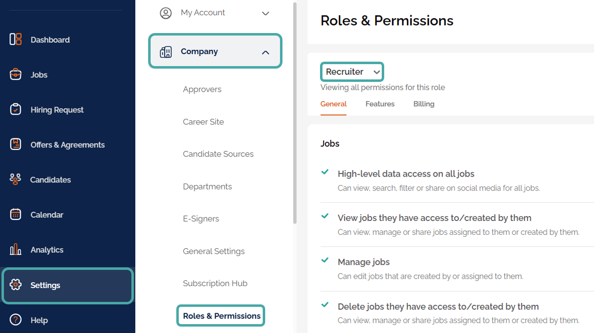 - Can create new jobs and manage the hiring team for them