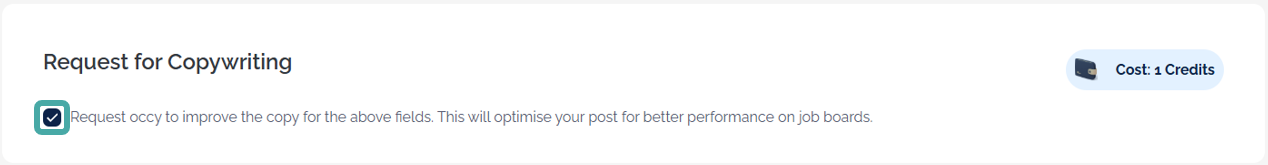 Note: Copywriting requests for job templates incur a charge of 1 Occy credit. Copywriting can only requested once per job template to avoid a repeat charge.