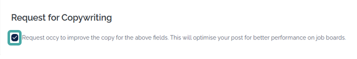 Copywriting can be requested for free on jobs being posted to the Premium or Lite channel. To request copywriting for a job to be posted to other channels, please create a Job Template.