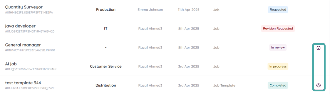 Note: Jobs will not be visible while copywriting is in progress and can only be viewed in the Copywriting section found in the Settings area.
