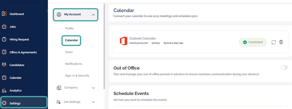 Manual event scheduling allows you to create timeslots within your work calendar using a specific format which links the slots to occy, giving you full control over your availability for candidate interviews.