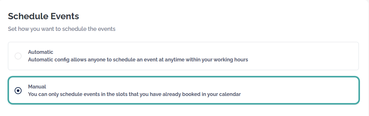 For more information on the difference between manual and automatic scheduling, follow Scheduling Events.