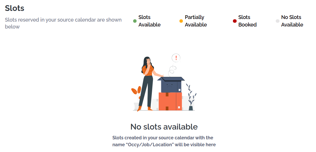 Once you have added slots to your work calendar, refresh your occy calendar to view the slots in your calendar and the Slots section of the Calendar page.