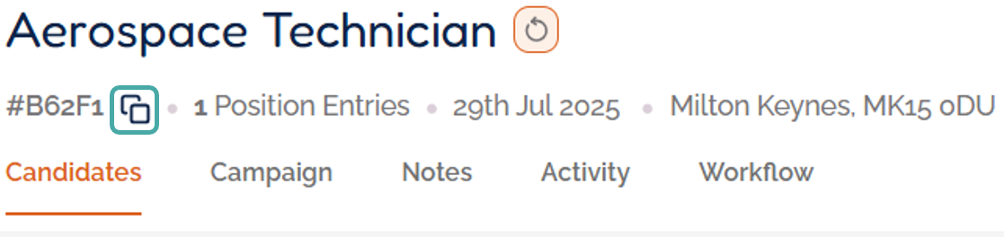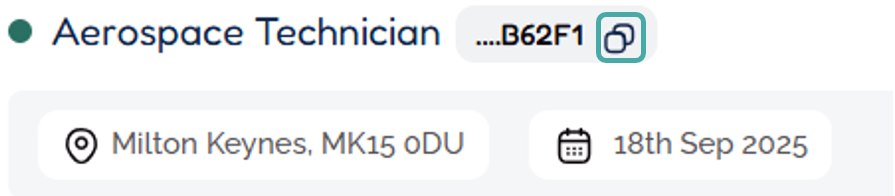 - By using the copy icon next to the end of the reference number next to the job title from the list in the Jobs section.