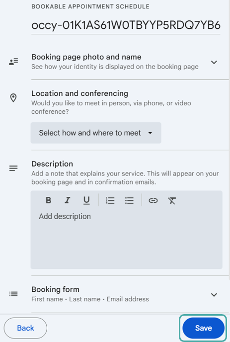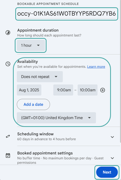 Note: When adding a time and date, make sure to check for conflicting appointments, as this may cause the slot to show as unavailable.