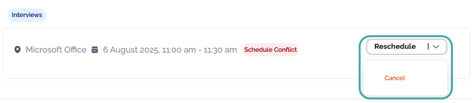 - To reschedule an interview, select Reschedule from the dropdown menu.